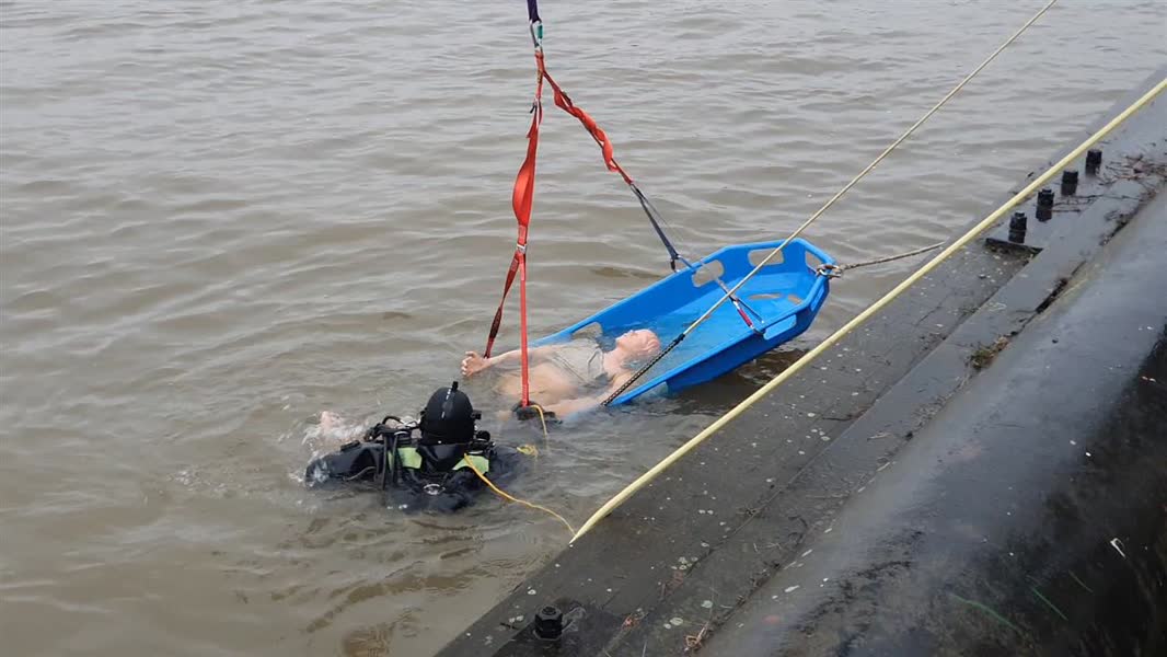 Twee duikteams uit Dordrecht en Rotterdam kwamen bij de oefening te pas. Er werd een zoekactie gestart naar de vermiste personen. Twee slachtoffers werden al snel gevonden en werden op de kade gereanimeerd. De vier andere slachtoffers zijn verdwenen in het diepe water.