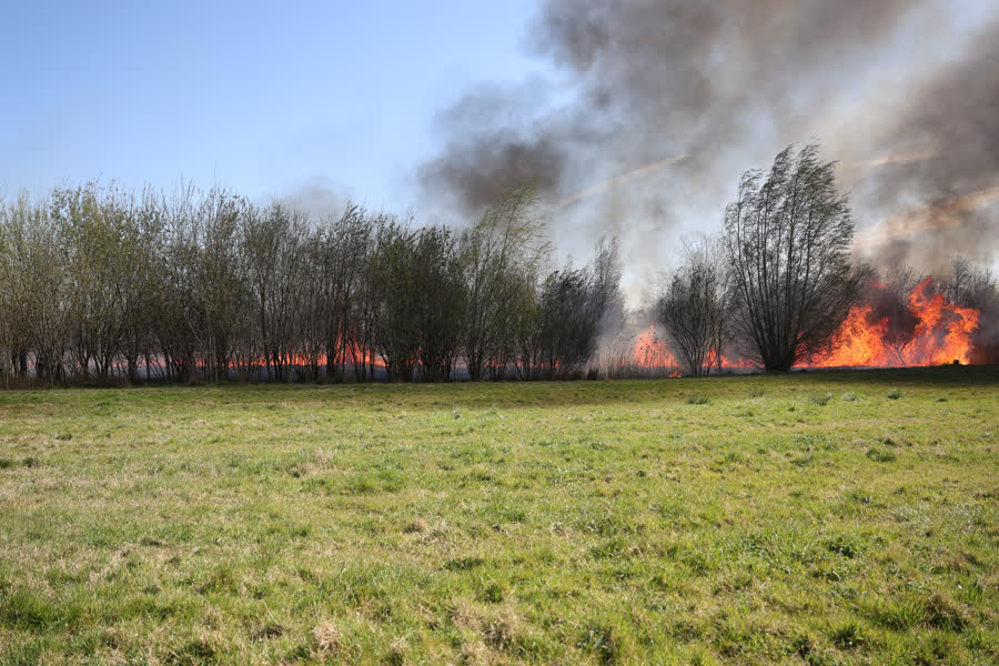 Aan de rand van het Donckse Bos in Ridderkerk heeft zaterdagmiddag een grote natuurbrand gewoed. Aan de kant van de Randweg ter hoogte van de Johan Sebastian Bachstraat stond een gebied van ongeveer 100 bij 100 meter in brand.