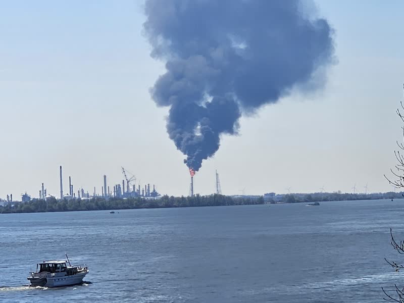 De rook is ontstaan door extra affakkelen: een mechanisme dat als veiligheidsmaatregel in werking treedt bij het uitvallen van de stroom in fabrieken. De situatie is inmiddels onder controle.