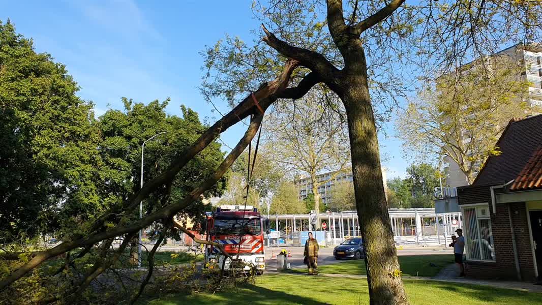 Het was woensdagavond even schrikken voor een paar bewoners aan de Plutolaan in Sterrenburg. Rond de klok van half zeven hoorde zij een flinke krak, niet veel later brak een grote tak van een boom af.