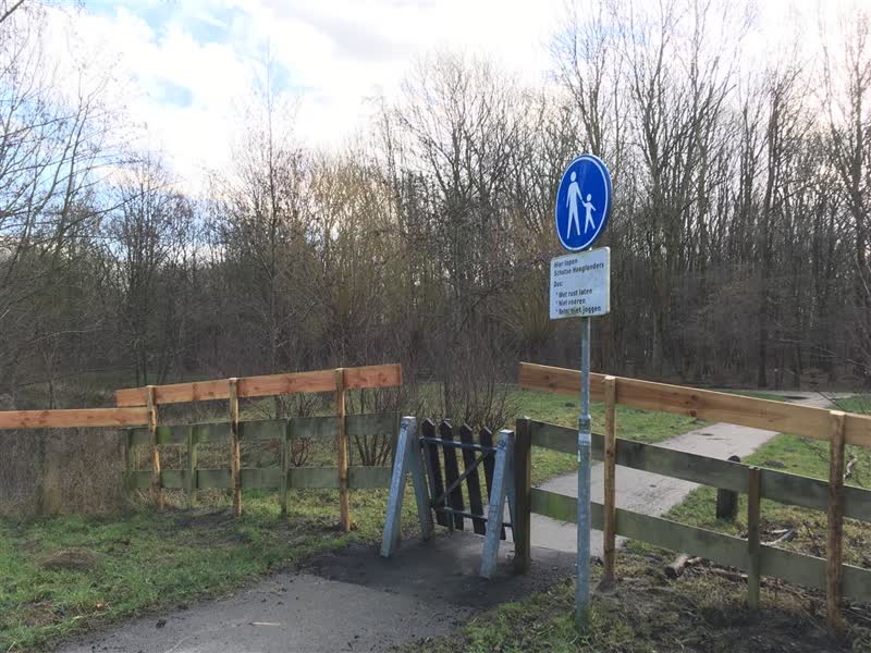 Eén van de hekken van het Dubbelmondepark is verhoogd. Dat moet voorkomen dat de Schotse hooglanders er overheen springen.