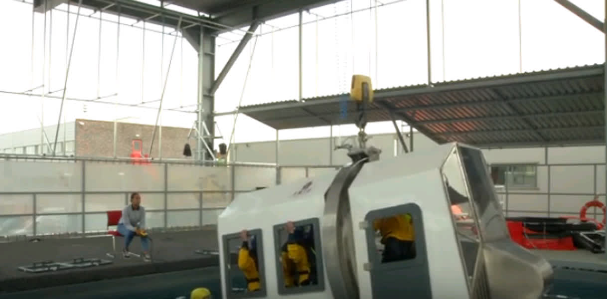 Het is een noodzakelijke oefening voor mensen die veel met een heli naar een offshore-locatie zoals een boorplatform moeten. Hoewel het er voor sommige mensen allemaal uitziet als een spelletje, is het bloedserieus en sommige deelnemers kunnen het vooraf behoorlijk op hun zenuwen krijgen.