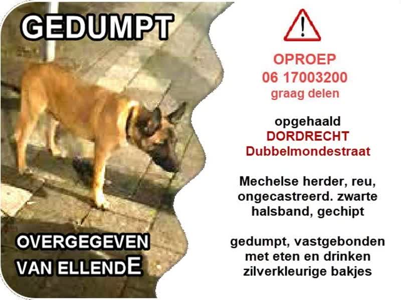 Herder gedumpt in Dubbelmondestraat; beestje is erg angstig