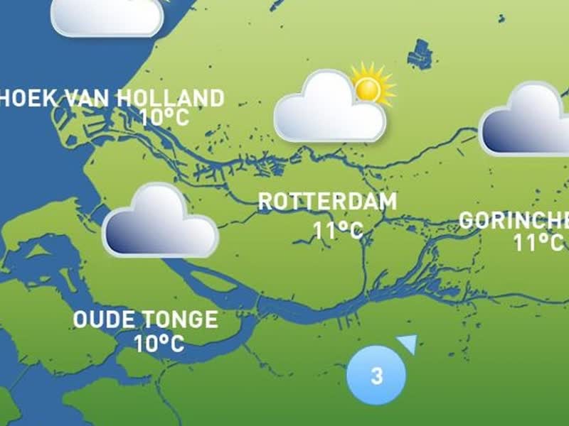 Zondag is er veel bewolking en blijft het tot de middag overal droog. In de loop van de middag gaat het vanuit het zuidwesten regenen. Er staat dan een matige wind uit het zuiden boven land tot een vrij krachtige wind aan zee, windkracht 3 tot 5. Later in de avond komt er mogelijk tijdelijk veel wind te staan uit het zuidwesten met kans op windstoten.