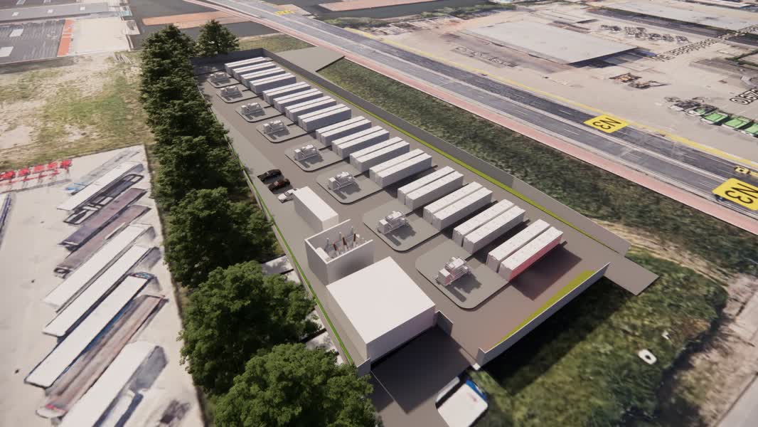 De kubussen, die samen dus het grote batterijopslagsysteem vormen, moeten er in de zomer van 2025 staan. Begin 2026 moet het systeem gaan werken en voor maximaal 90 megawattuur aan stroom opslaan.