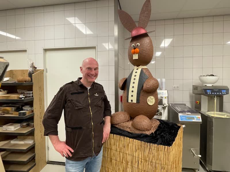 Volgens hem is er juist een andere uitdaging: “Het is eerder spannend of dat de paashaas tijdens het festival heel blijft. “Het is natuurlijk chocola, dus als je er hard tegenaan stoot gaat het kapot. Maar ik ga er niet van uit dat dat gaat gebeuren.”