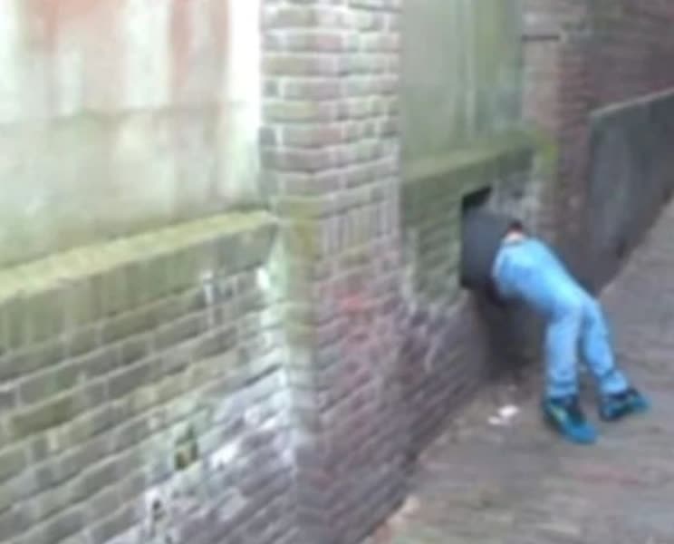 Hilarisch: man probeert in te breken door heel klein gat in Dordtse steeg