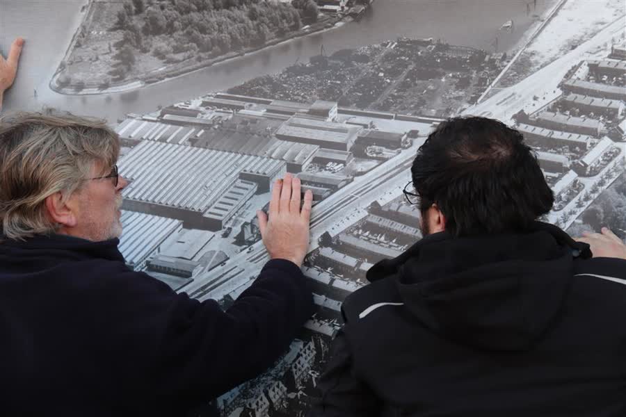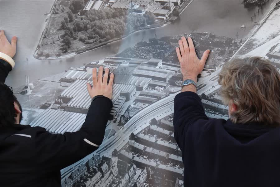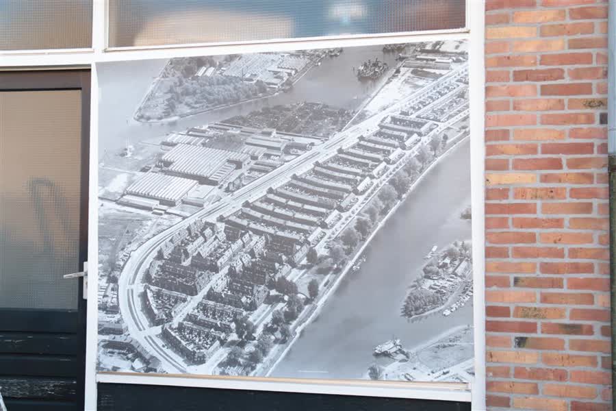 En met die opdracht ging grafisch vormgever Peter Ebben graag aan de slag. "Ik heb deze foto bij het Regionaal Archief in Dordrecht gescand en bewerkt. En nu hangt hij hier op." Ebben had naar eigen zeggen de keus uit een stuk of vier foto's, maar hij is blij met zijn uiteindelijke keuze. "Als je wil weten hoe het ooit geweest is, dan is deze foto het beste."