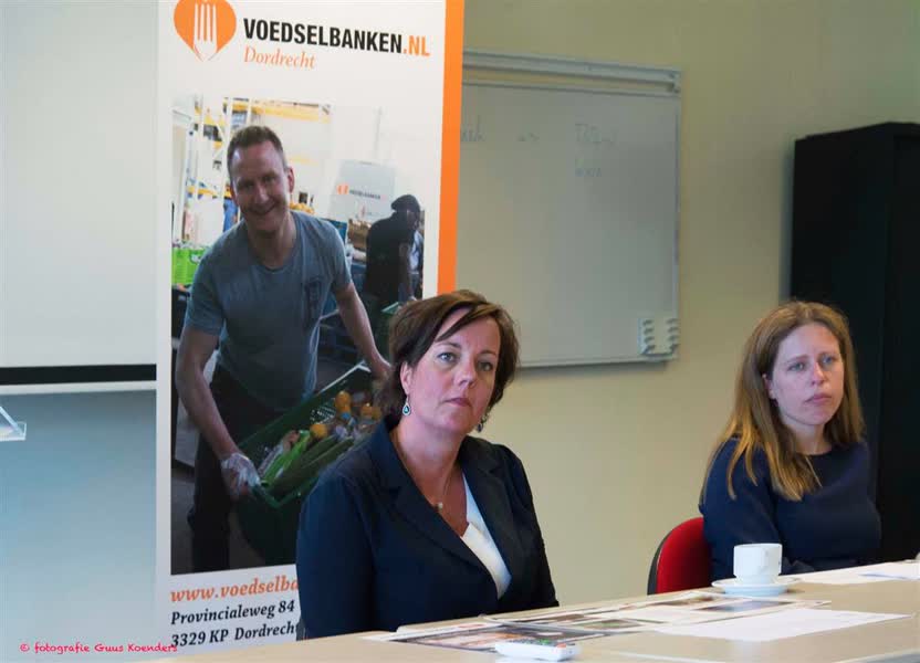 Hoogbezoek maandag bij de Voedselbank Dordrecht. Minister Schouten en staatssecretaris Van Ark kregen een rondleiding.
