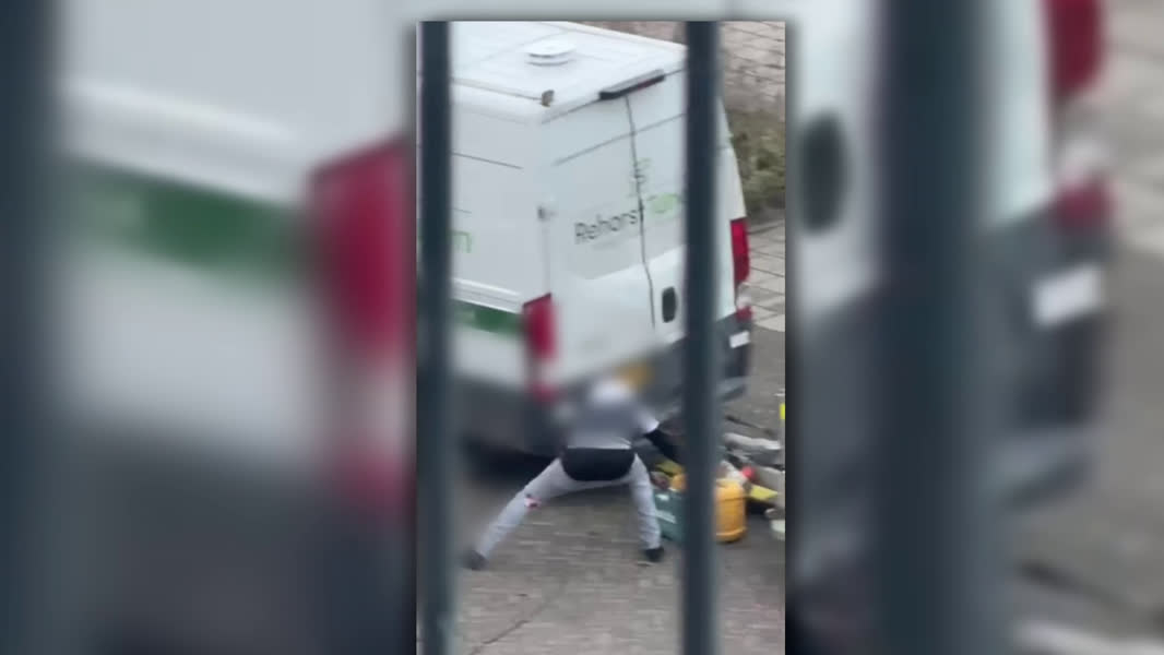 Als de hovenier doorheeft dat er iemand aan zijn spullen zit, sprint hij er direct op af en weet de deur nog deels open te trekken. De dief geeft ondertussen flink gas. De hovenier blijft in eerste instantie de auto vasthouden, waardoor hij meters door de auto wordt meegesleurd.