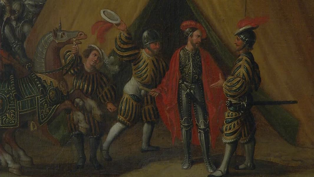 Een canvasdoek van het schilderij van het beleg van Dordrecht is tijdens de archeologiedagen te bewonderen bij het Huis te Merwede. Een replica van het schilderij uit 1626 is te zien in het Hof van Nederland.