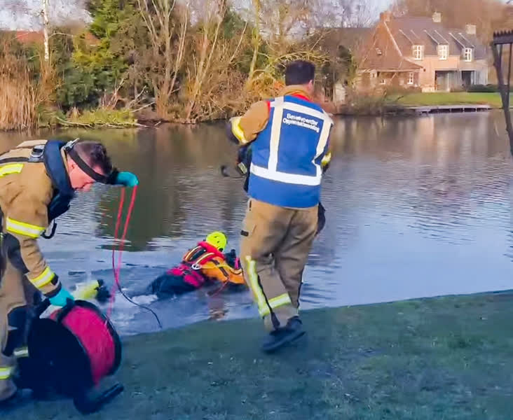 "Gelukkig was alles in orde en kon iedereen met vervolg", schrijven agenten op Instagram. Naast de politie werd vooral de brandweer opgeroepen voor de inzet aan de Dorpsstraat. Zo kwam er onder meer een duikteam op de melding af.