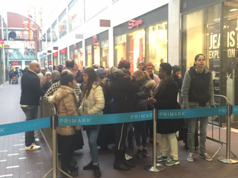 In het winkelcentrum stonden dranghekken om alles in goede banen te leiden. Kledingwinkel Primark opende vanochtend voor het eerst de deuren.