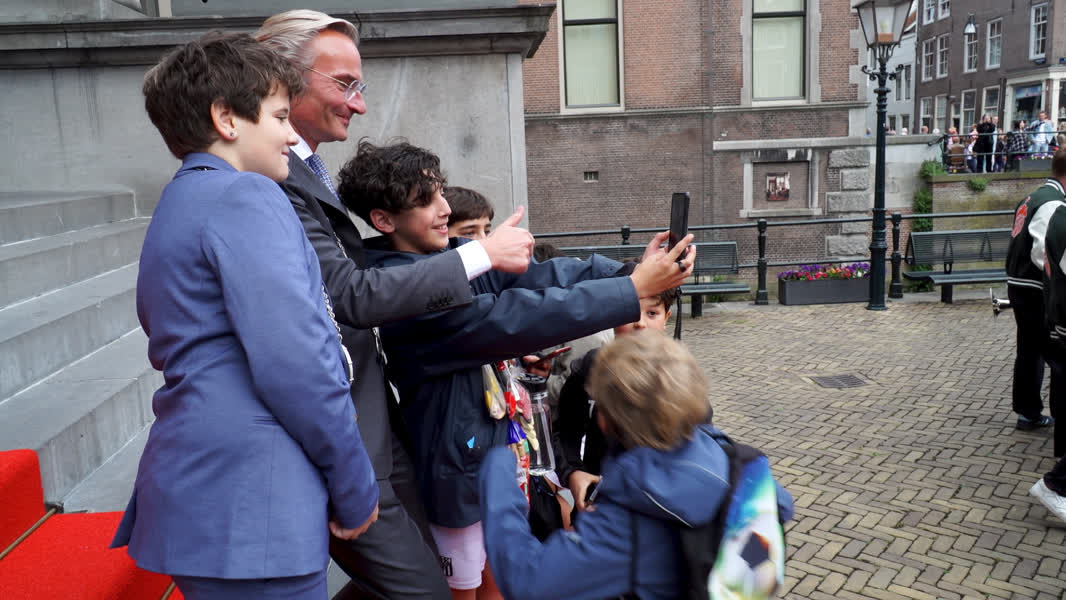 En dat is geen overdrijving. Want de aandacht die hij krijgt van enthousiaste ouders, begeleiders en de honderden kinderen op zijn eerste dag is enorm. Er wordt gezwaaid, er worden foto’s gemaakt en de twee duimen van de burgemeester schieten bij elk kiekje vrolijk omhoog.