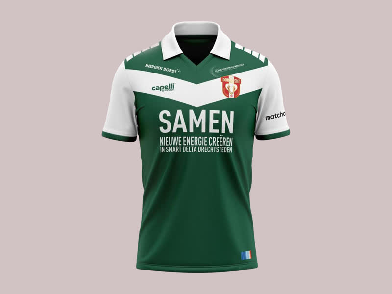 FC Dordrecht heeft het shirt bekendgemaakt waarin de ploeg de eerste klimaatneutrale wedstrijd in het betaald voetbal speelt. Het duel met TOP Oss, tevens seizoensafsluiter, is op vrijdag 19 mei.