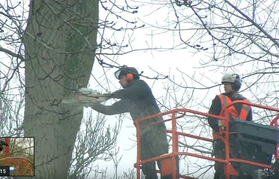 Opzichter boomverzorging Frans Willemsen geeft in een filmpje tekst en uitleg over de bomenkap. Ook wordt kort de geschiedenis van het Wantijpark verteld.