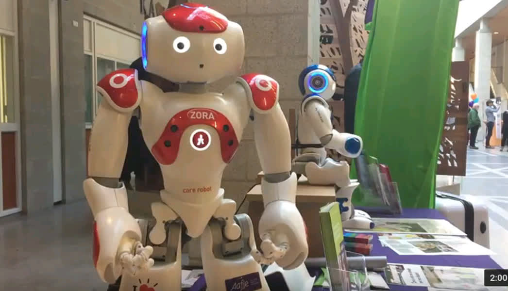 Thuiszorgorganisatie Aafje presenteerde Zora. Dat is een robot die eenzame mensen gezelschap kan houden. Zora zingt, danst en praat. Ook was een robot te zien die medicijnen op kan halen. Dat hoeft dan niet meer door een verpleegkundige te gebeuren. Die heeft dan meer tijd voor patienten.