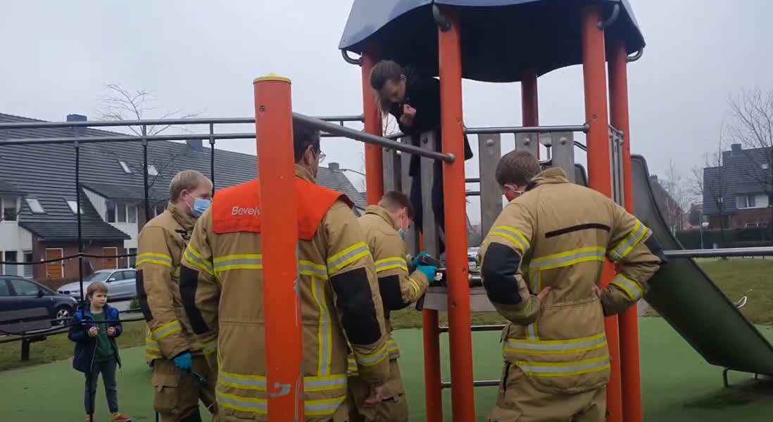 Een 9-jarig meisje kwam maandagmiddag vast te zitten in een speeltoestel aan de Jacob Marisstraat.
