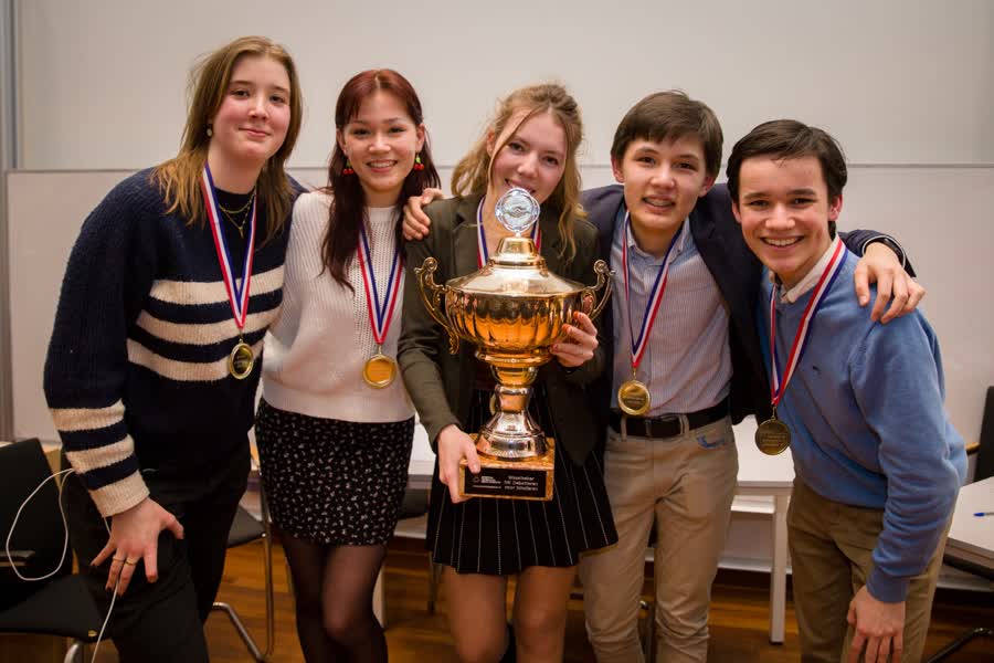 Het debatteam van het Johan de Witt Gymnasium uit Dordrecht staat zaterdag in de finale van het NK D...