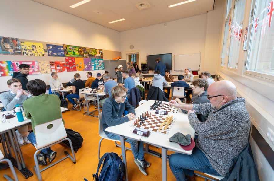 Verschillende schakers aan de slag in een klaslokaal Harry Gielen