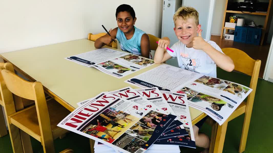 De kinderen die op de Buitenschoolse opvang zitten bij SKD Kinderopvang zijn de afgelopen weken bezig geweest met het maken van een eigen krant. Dat deden zij in het kader van het thema ‘Mega Media'.