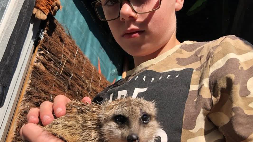 "Ik probeer ze een zo natuurlijk mogelijke omgeving en goede verzorging te geven", vertelt Rob. Daarbij krijgt hij hulp van zoon Finn (11), die net het stinkdier van ontbijt voorziet: "Hondenbrokken en ham. Vindt-ie lekker en is goed voor hem."