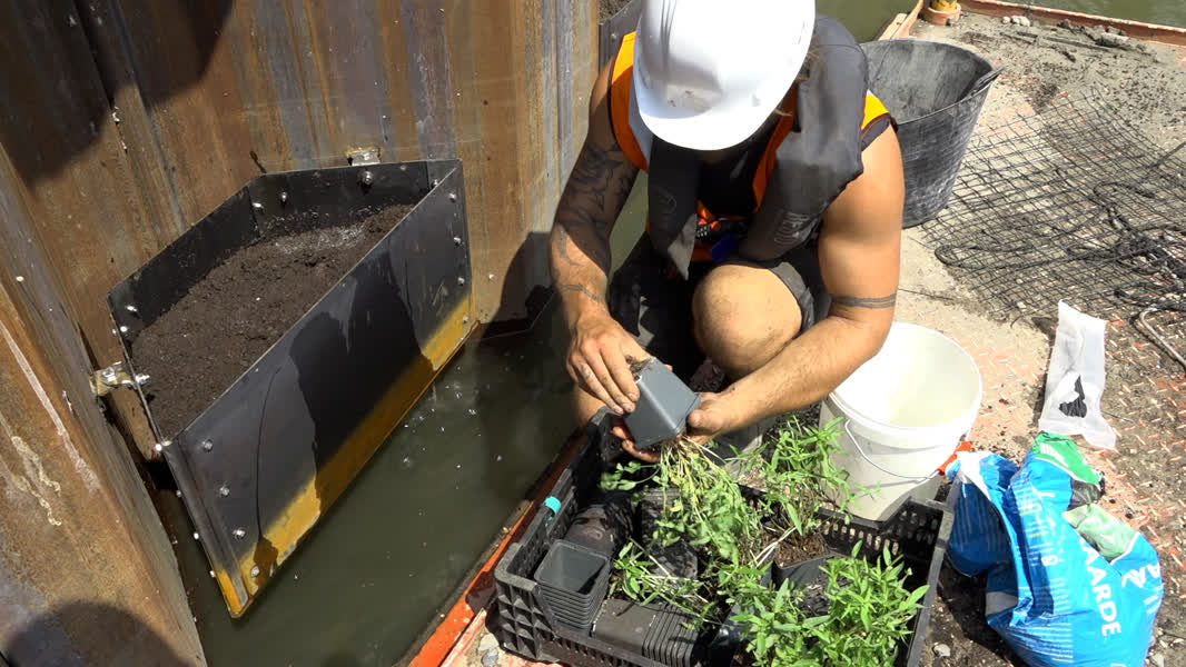 In Dordrecht werken Jesse en Max samen met de gemeente, aannemersbedrijf Gebr. de Koning en het waterschap. Het is hun grootste uitdaging tot nu toe, aan de kademuur bij het Wantij hebben ze de afgelopen dagen maar liefst drieëndertig getijdenbakken aangebracht.