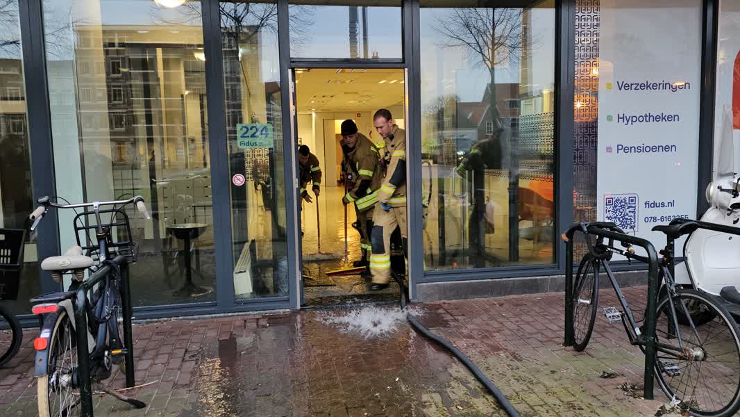 De brandweer heeft de hoofdkraan na een tijdje gevonden en afgesloten. Het water is met onder meer een waterstofzuiger uit de ruimte gepompt. Werknemers van financieel dienstverlener Fidus moesten donderdag ergens anders aan het werk.