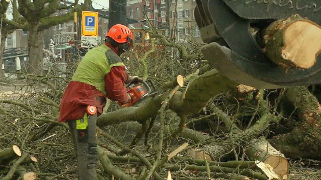 Op de Wolwevershaven zijn vandaag kastanjes omgezaagd. De bomen moeten weg, omdat de kademuur hersteld moet worden.