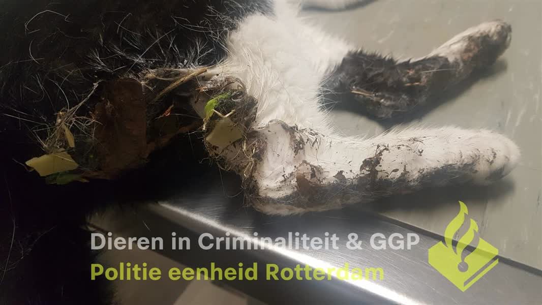 Volgens de dierenpolitie is het geen ongeluk geweest. “De lijm zat echt overal, op z’n anus, genitaliën. Hij is daar niet even in gaan zitten.”