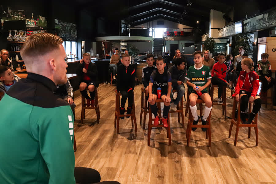 Kinderen stellen vragen over talent aan FC Dordrecht-aanvoerder