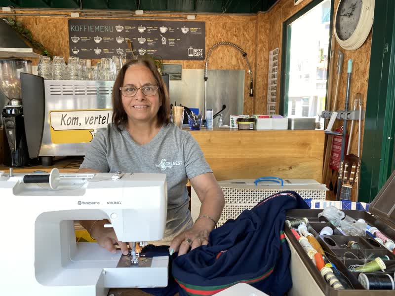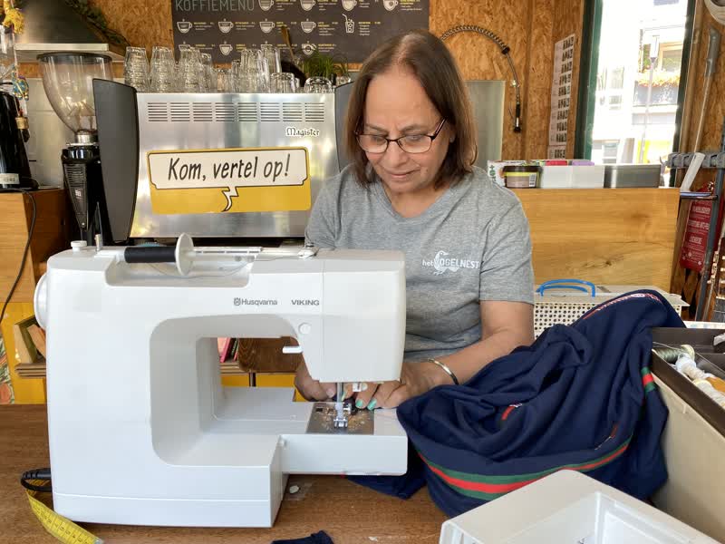 Ze legt uit dat ze vroeger van haar moeder geleerd heeft om te naaien, maar het niet professioneel wilde oppakken. Dertig jaar geleden kwam ze naar Nederland. Toen ze in 2016 hoorde dat er bij Het Vogelsnest mensen werden gezocht om kleding te vermaken, wilde ze graag meehelpen. “Ik wordt er blij van om met mensen te praten en gezellig met ze te zitten.”