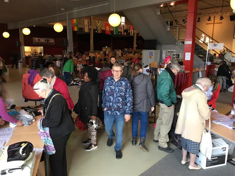 Op de Sikkelstraat is het normaal gesproken al druk, maar vandaag kwam daar nog wat verkeer bij. Er kwamen namelijk veel mensen af op de halfjaarlijkse kledingbeurs van de Jozuakerk.