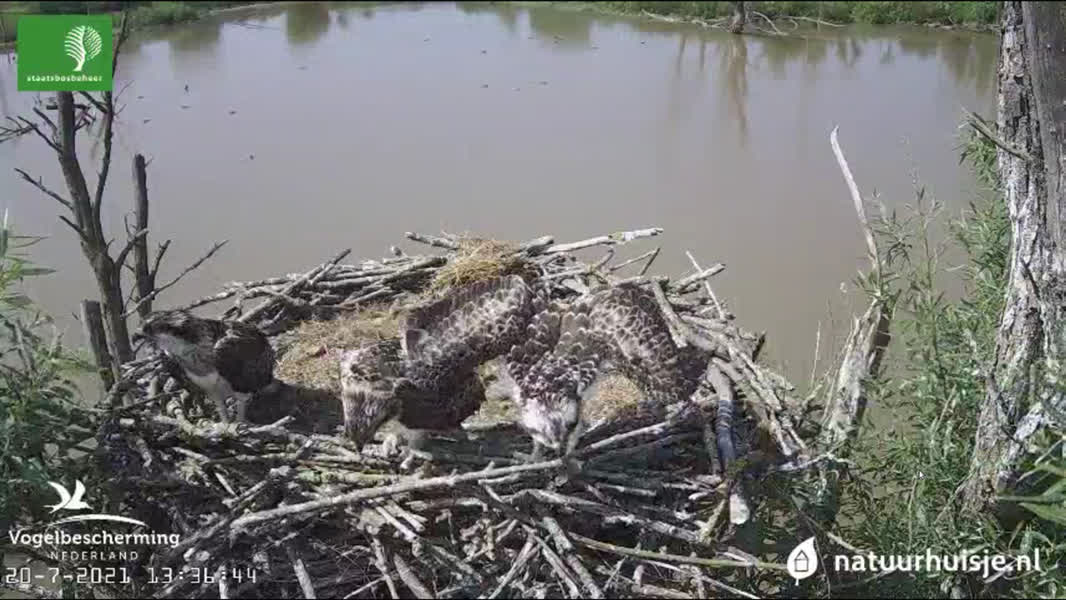 Het gaat niet lang meer duren of de jongen vliegen hun zelfstandige toekomst tegemoet. Volgens de boswachters zal dat waarschijnlijk binnen twee weken gebeuren.
