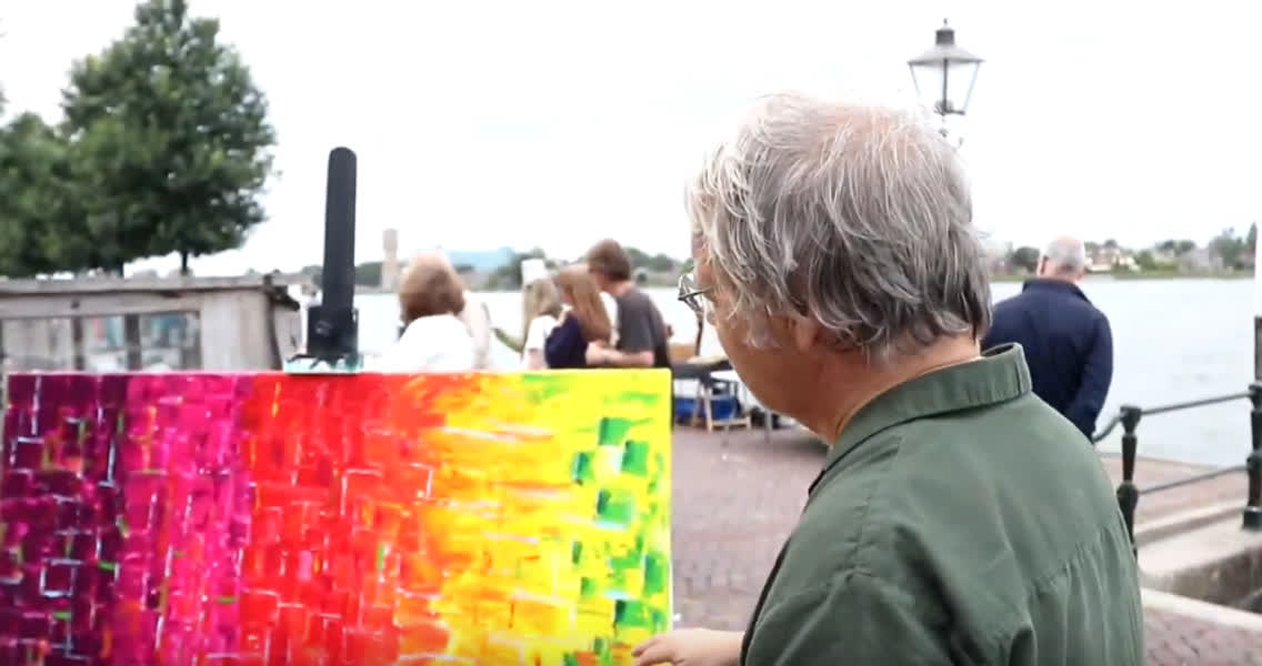 Onno de Bruyne is een van de organisatoren van Kunsthoofd. Hij is zelf ook kunstenaar en heeft zich op kleurrijke werken gestort. "Ik ben nu erg in de berken," vertelt De Bruyne. "Ik experimenteer met volume geven aan verf, zodat er structujur ontstaat. En ik experimenteer ook met deze kleuren, die gebruik ik normaal niet zo vaak."