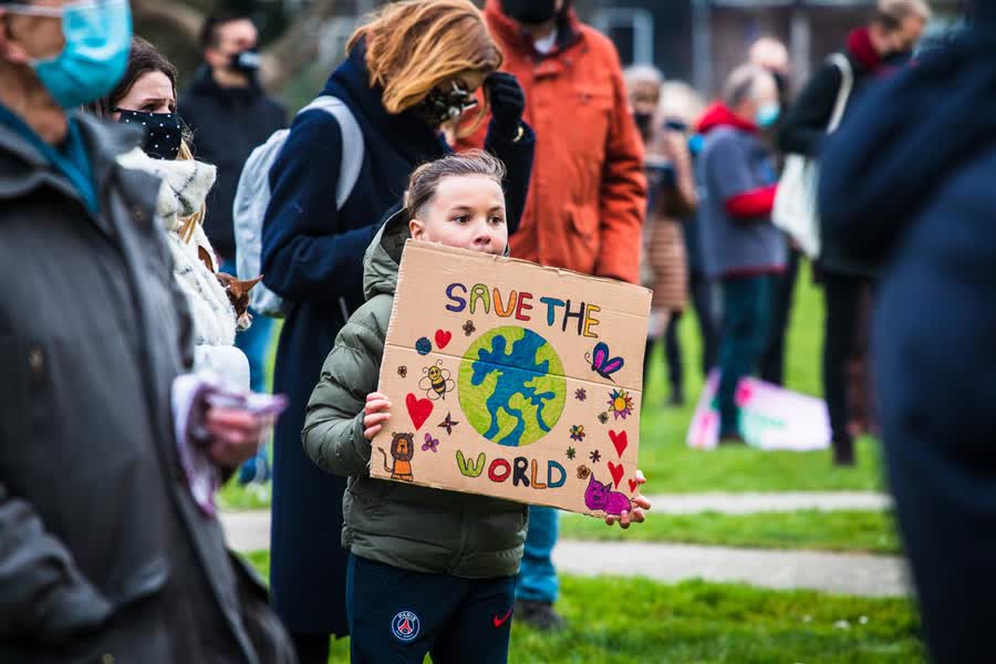 Volgens de samengekomen actievoerders is het dringend tijd om klimaatverandering aan te pakken. "De aarde gaat naar de gallemiezen", vindt Isolde. "En dat moeten we tegengaan natuurlijk." Zij heeft daarom een bord gemaakt en daarop "Stop de ecocide" geschreven.
