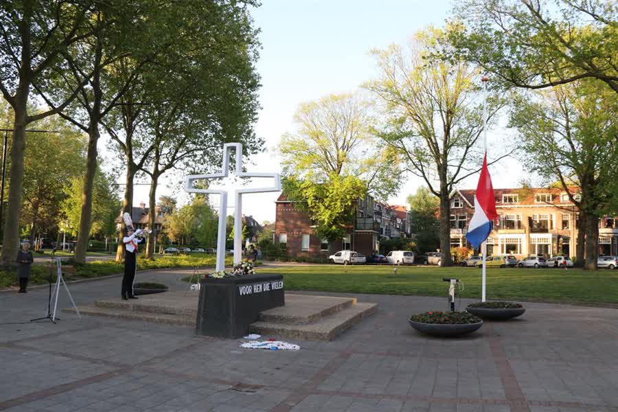 Door de corona-uitbraak was er geen publiek welkom bij de jaarlijkse herdenking op het Sumatraplein, waar het monument staat ter herinnering aan de slachtoffers van de Tweede Wereldoorlog.