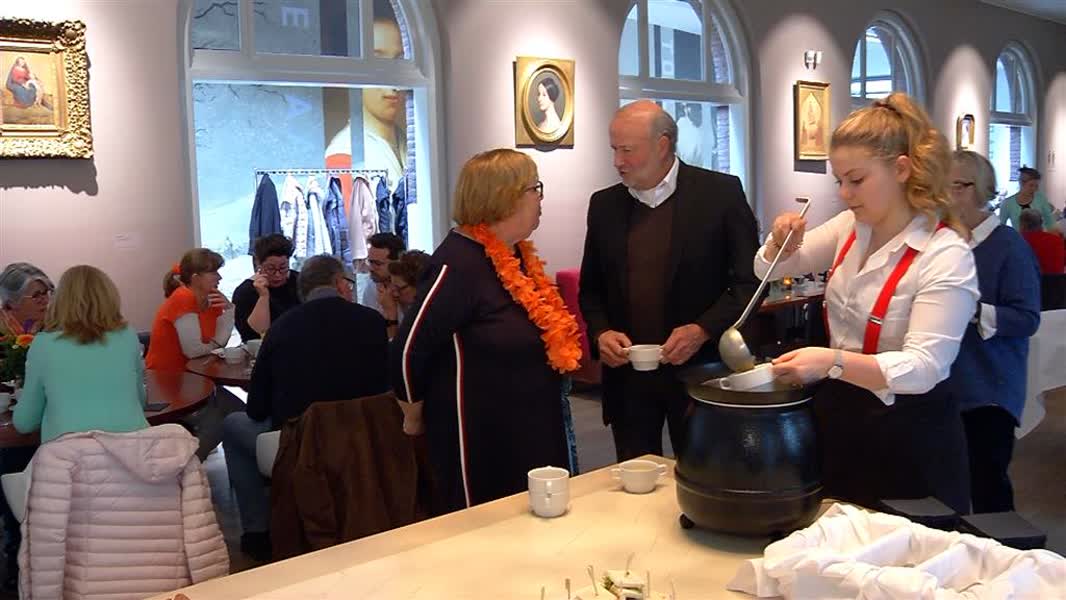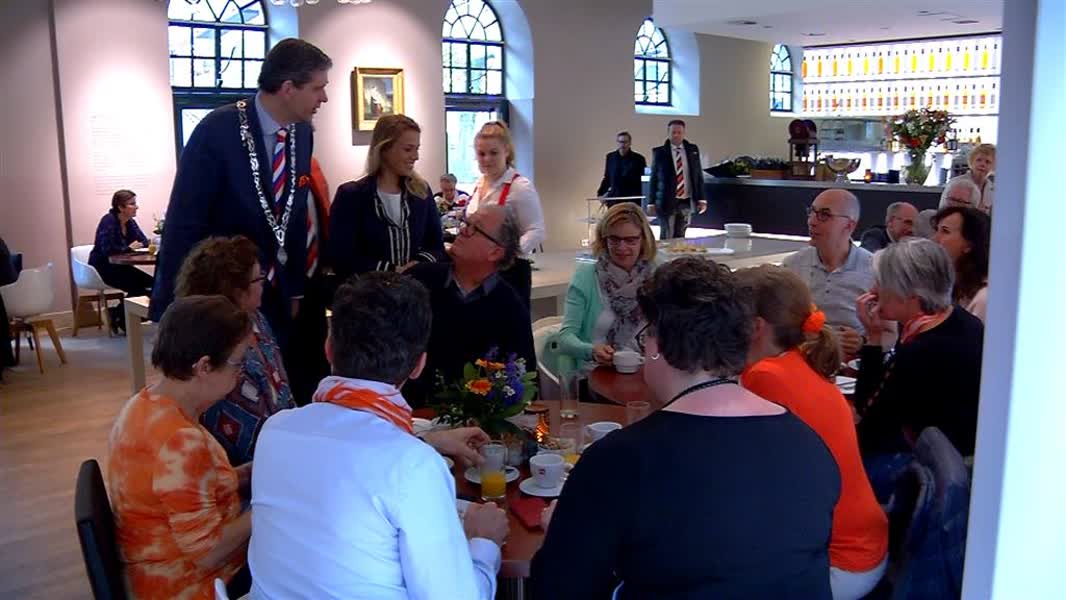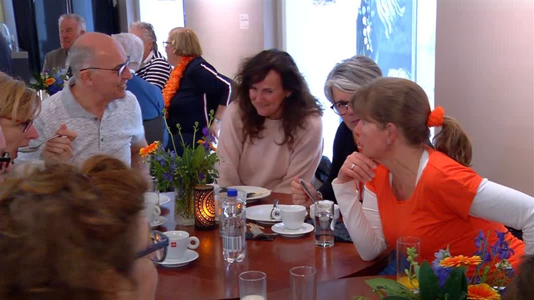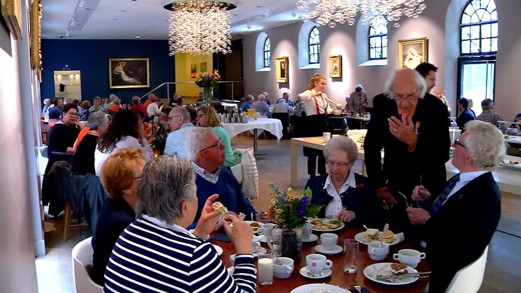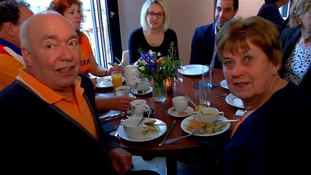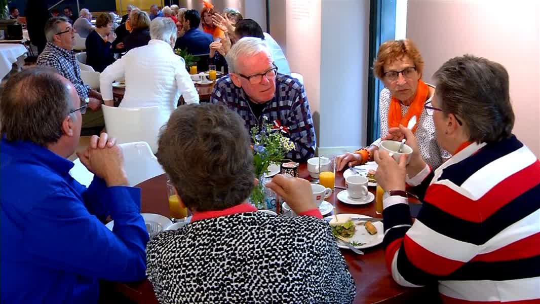 Er konden 100 man/vrouw aanschuiven voor de brunch met muzikale omlijsting. Onder de gasten ook het echtpaar Bomius die hun 45 jarig huwelijk vierden. Zij kregen uit handen van burgemeester Wouter Kolff een bloemetje aangeboden.