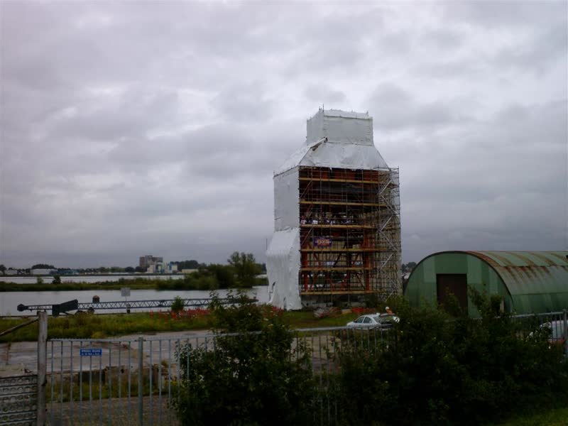 De giek ligt op de grond en rond de kraan staan steigers. De kraan wordt al ruim tien jaar niet meer gebruikt. De kraan wordt eerst opgeknapt en geverfd. Daarna wordt hij op een ponton geplaatst en verscheept naar Stadswerven. Daar dient hij als verwijzing naar de scheepsbouwactiviteiten die vroeger op het terrein van Stadswerven plaatsvonden.