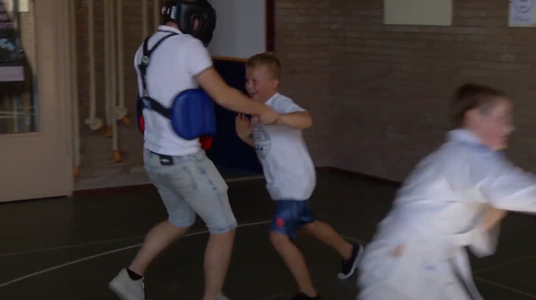 Krav maga is een verdedigingskunst. Alfred van den Berg is instructeur en leert de kinderen bepaalde technieken, zoals het blokkeren van een hand richting je hoofd. “Wat wij de kinderen willen meegeven is dat ze zichzelf kunnen verdedigen in lastige situaties,” vertelt Alfred.