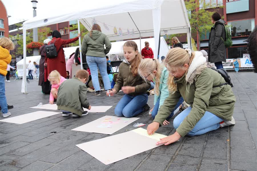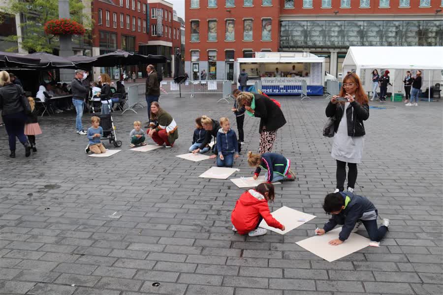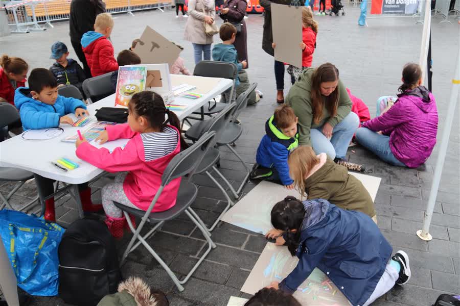Het evenement, dat gehouden werd op het Statenplein, is gratis voor alle Dordtse kinderen. Na een middag krijten, werden de mooiste tekeningen beloond met een prijs.