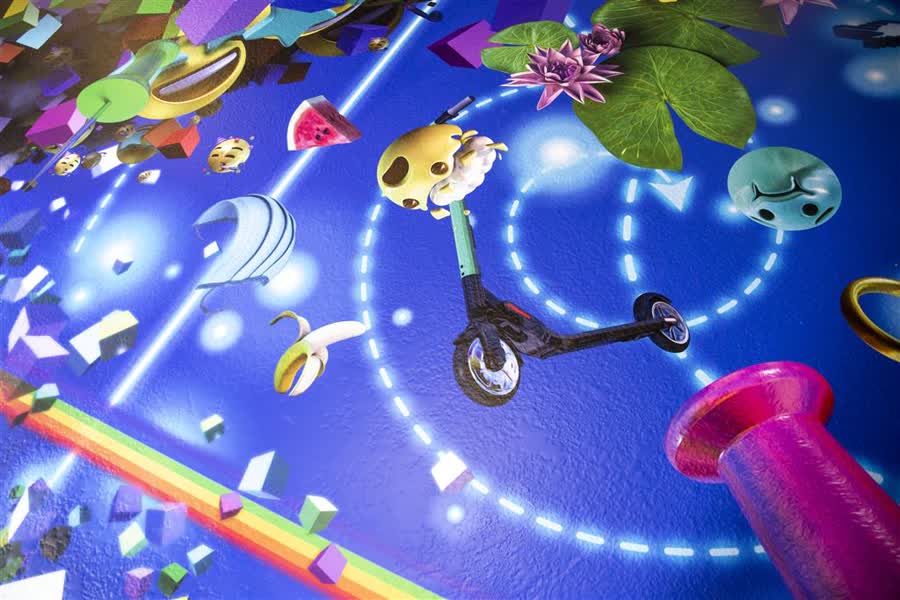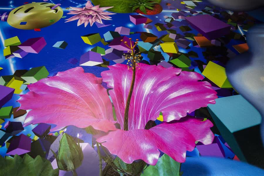 Regenbooglijnen, fruit, satellieten of computericonen; op het eerste gezicht lijken ze niks met elkaar gemeen te hebben, maar tóch zijn deze afbeeldingen samengevoegd op de vloer in het Groot Handelsgebouw (GHG) in Rotterdam. Kunstenaar Arno Coenen uit Dordrecht maakte met 80.000 pixels een digitaal kunstwerk op de vloer van het laadperron.