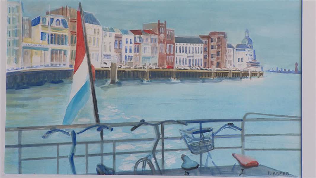 "Dit is dan onze Karla Kaper-zaal", grapt Elke Scheffers van het Nationaal Baggermuseum in Sliedrecht. 73 kleurige aquarellen vullen de muren. Het zijn mooie, alledaagse plaatjes vanaf het water uit het gebied grofweg tussen Dordrecht, Schiedam en Hardinxveld-Giessendam. "Ik word hier vrolijk van. Het is laagdrempelig, het is herkenbaar. Wie met het verkeerde been uit bed stapt, wordt vrolijk als hij dit ziet."