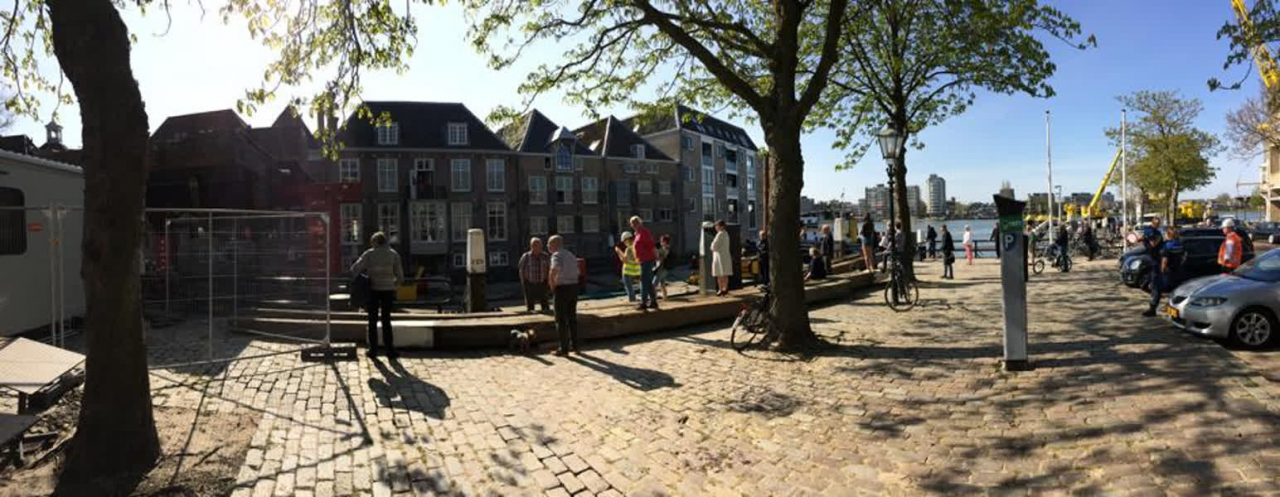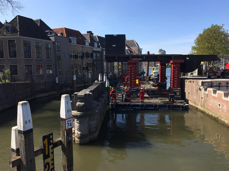Eigenlijk moest het maandag al gebeuren, maar doordat een drijvend platform nét te groot was moesten er in de haven aanpassingen gemaakt worden. Dat zorgde voor een dag vertraging.