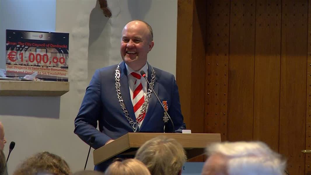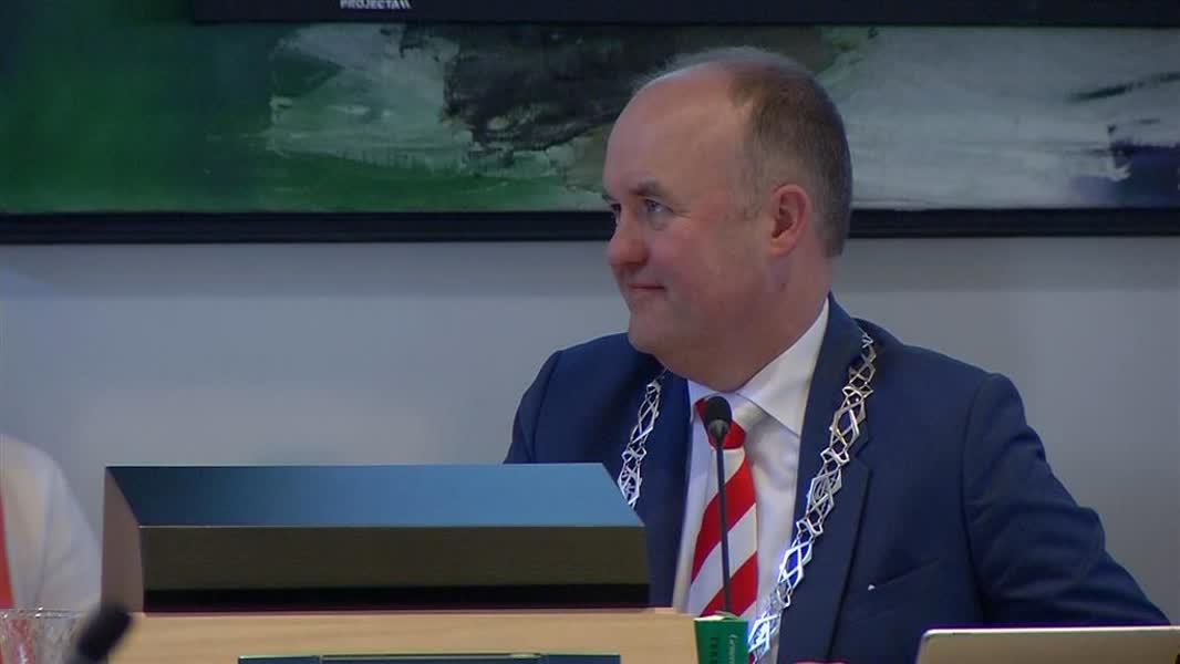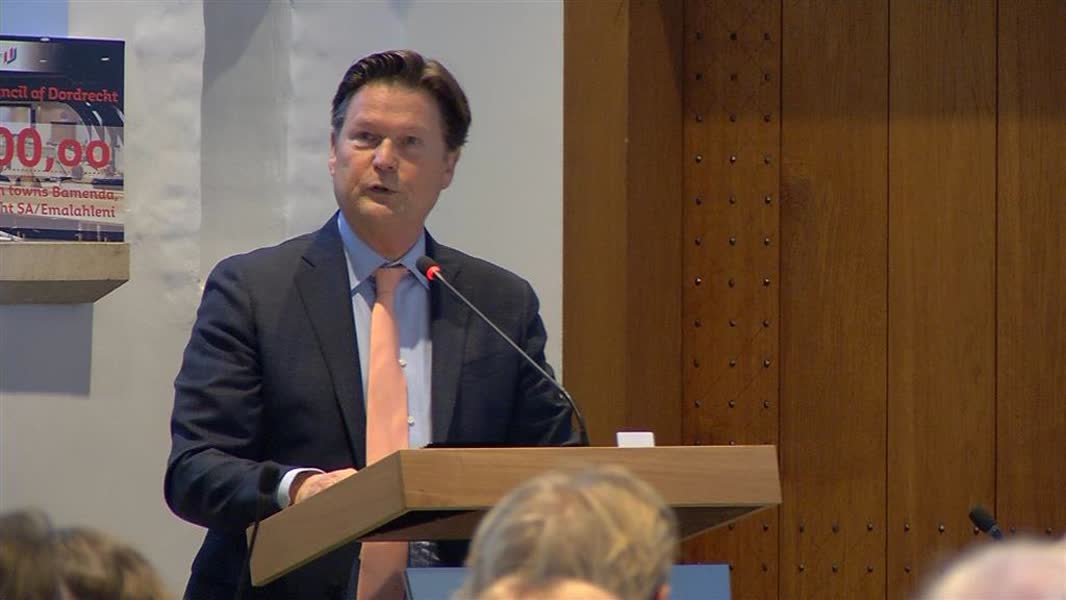 Hij werd tijdens deze bijzondere vergadering toegesproken door onder andere de nestor van de Raad, Nelleke de Smoker- van Andel, wethouder Piet Sleeking en de commissaris van de Koning in Zuid-Holland, Jaap Smit. (zie video)