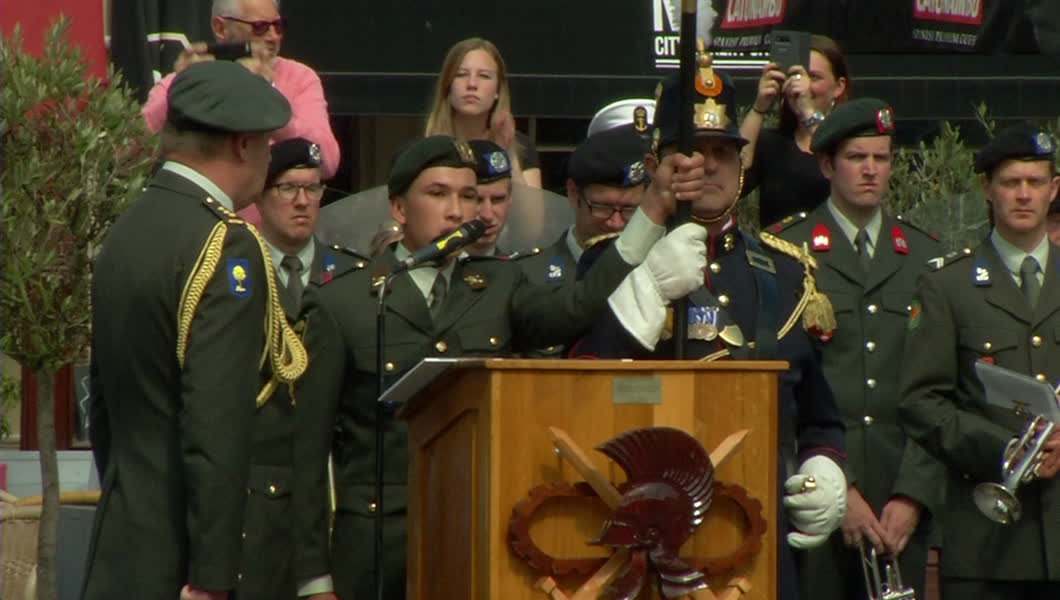 Vanmiddag zijn militairen van het 41 Pantsergenie-bataljon onder grote belangstelling beëdigd op het Statenplein.