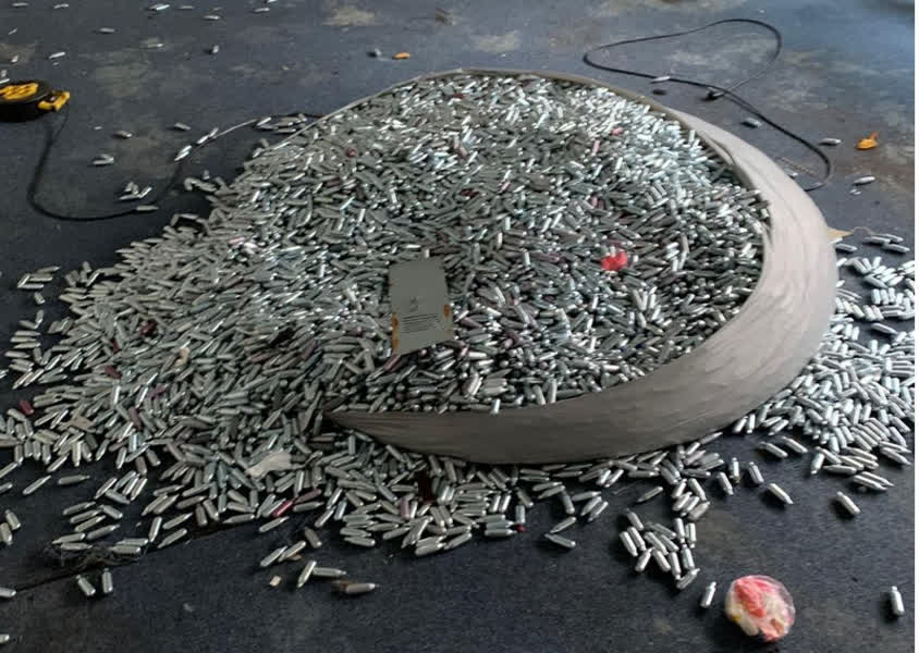Woensdag kreeg de politie een melding binnen over een opengebroken deur in het gebouw. Bij inspectie bleek er behalve een grote hoeveelheid lege lachgaspatronen ook uitwerpselen en ander afval rond te zwerven.