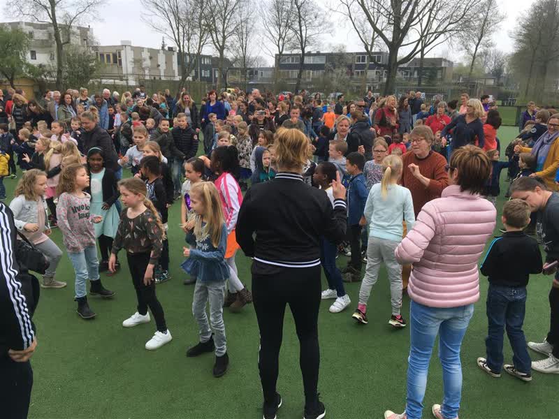 Minimaal 500 mensen moesten meedansen op het schoolplein. Dan zouden kinderen geld krijgen van ouders, grootouders of andere geldschieters. Dat aantal is gehaald.