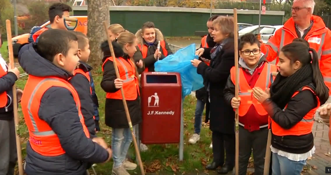 Leerlingen Kennedyschool gaan afval ruimen