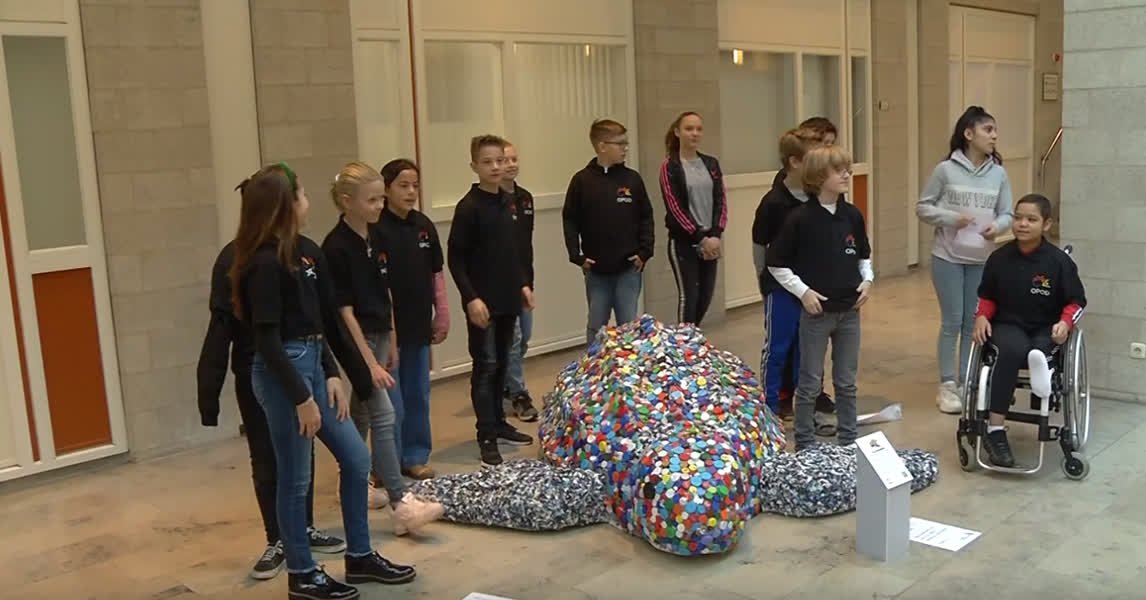 Leerlingen van de Openbare Basisschool Dubbeldam zijn de afgelopen maanden druk bezig geweest met het maken van een kunstwerk van gerecycled materiaal. Vrijdagochtend hebben de leerlingen de 'Schildpad' overhandigd aan het Albert Schweitzer ziekenhuis.